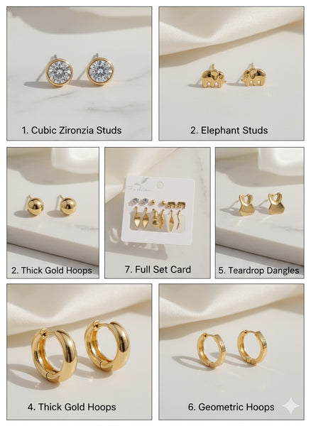 • Versatile Styles: Studs, Hoops, and Dangles included.
