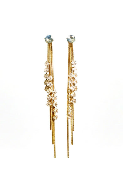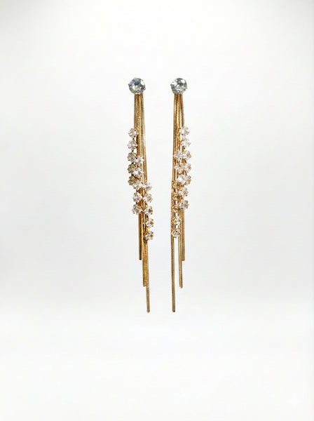 Chic gold-tone chain drop earrings accented with sparkling crystal details for a graceful, modern statement.